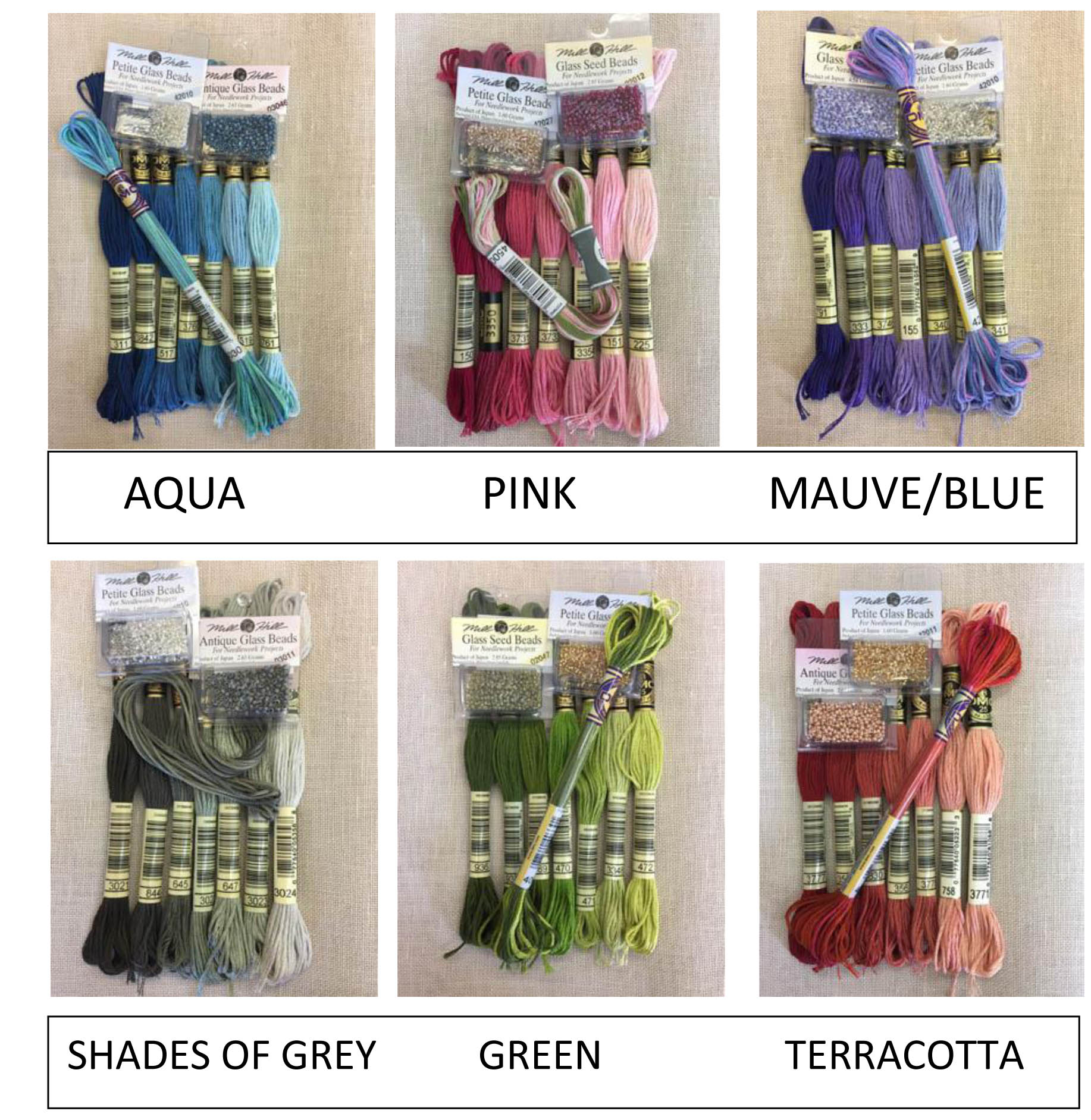 You can choose from 6 colourways. the sampler is intended to be worked in 4 main colours with extra shades just for the bargello section. You can personalise your sampler by adding an overdyed thread for the alphabets and numerals, beads and other embellishments, a favourite verse in place of one of the bands. there is plenty of opportunity for you to be creative and put your individual stamp on it. We have included one overdyed thread.